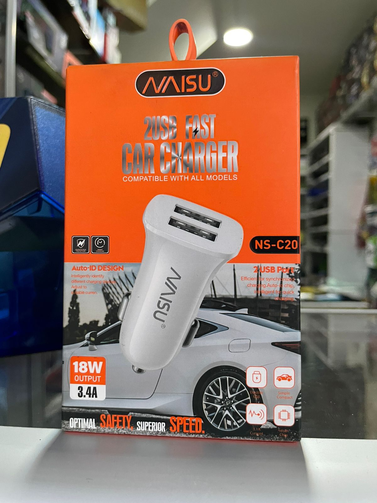 Cargador de Carro Naisu 2 USB Fast Charger 18W